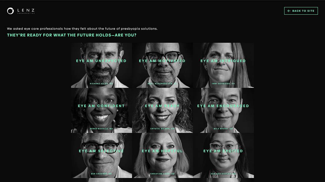 Developed a promotional microsite for Lenz Therapeutics’ “Eye Am” campaign, aimed at engaging optometrists and promoting a curated knowledge base. Built with .NET, HTML, SCSS, and vanilla JavaScript, the site featured GSAP-powered animations and performance-optimized SVG visuals. Delivered under a tight deadline while adapting to frequent design changes from the creative team, ensuring a smooth launch and consistent user experience.